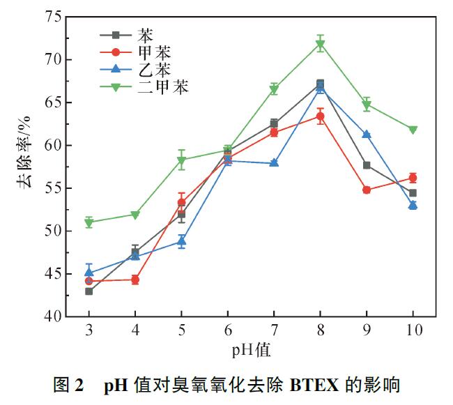 2.1pH值對臭氧氧化降解BTEX的影響
