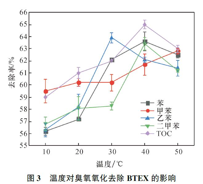 2.2溫度對臭氧氧化降解BTEX的影響