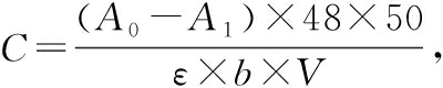ε——靛藍(lán)二硫酸鈉摩爾吸光度,1.84×104 L/(mol·cm);