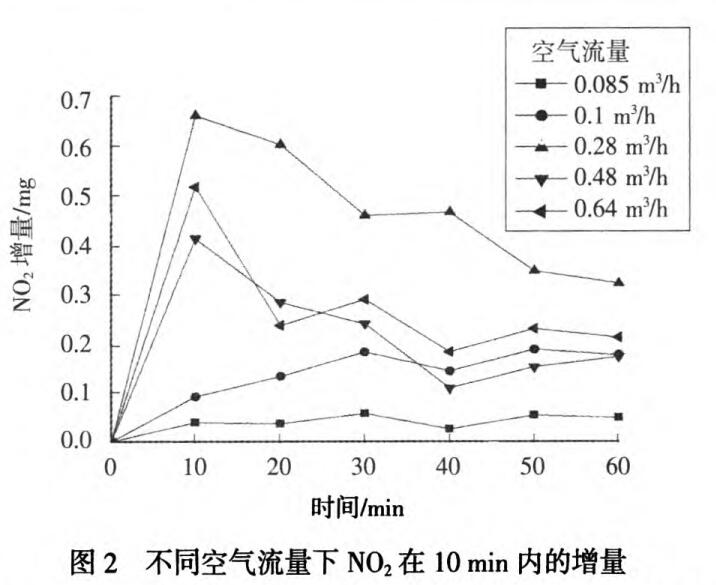 2.2不同空氣流量下NO2產(chǎn)量隨時間的增量