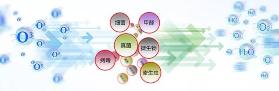 臭氧(O3)的消毒原理是:臭氧在常溫、常壓下分子結(jié)構(gòu)不穩(wěn)定,很快自行分解成氧氣(O2)和單個(gè)氧原子(O)。后者具有很強(qiáng)的活性,對(duì)細(xì)菌有極強(qiáng)的氧化作用,將其殺死,多余的氧原子則會(huì)自行重新結(jié)合成為普通氧原子(O2),不存在任何有毒殘留物,故稱“綠色”消毒劑。它不但對(duì)各種細(xì)菌(包括肝炎病毒,大腸桿菌,綠濃桿菌及雜菌等)有極強(qiáng)的殺滅能力,而且對(duì)殺滅霉菌也很有效。