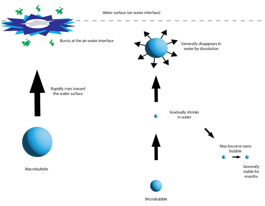 納米氣泡的定義是它們?cè)谒械莫?dú)特性質(zhì)。這些獨(dú)特的特性可能有助于將臭氧/氧氣溶解到某些水中。此外,臭氧因自然半衰期衰變而恢復(fù)為氧氣后,剩余的氧納米氣泡可能會(huì)繼續(xù)溶解在水中,并長(zhǎng)時(shí)間氧化水中的化合物。有報(bào)道稱納米氣泡在水中停留數(shù)周。